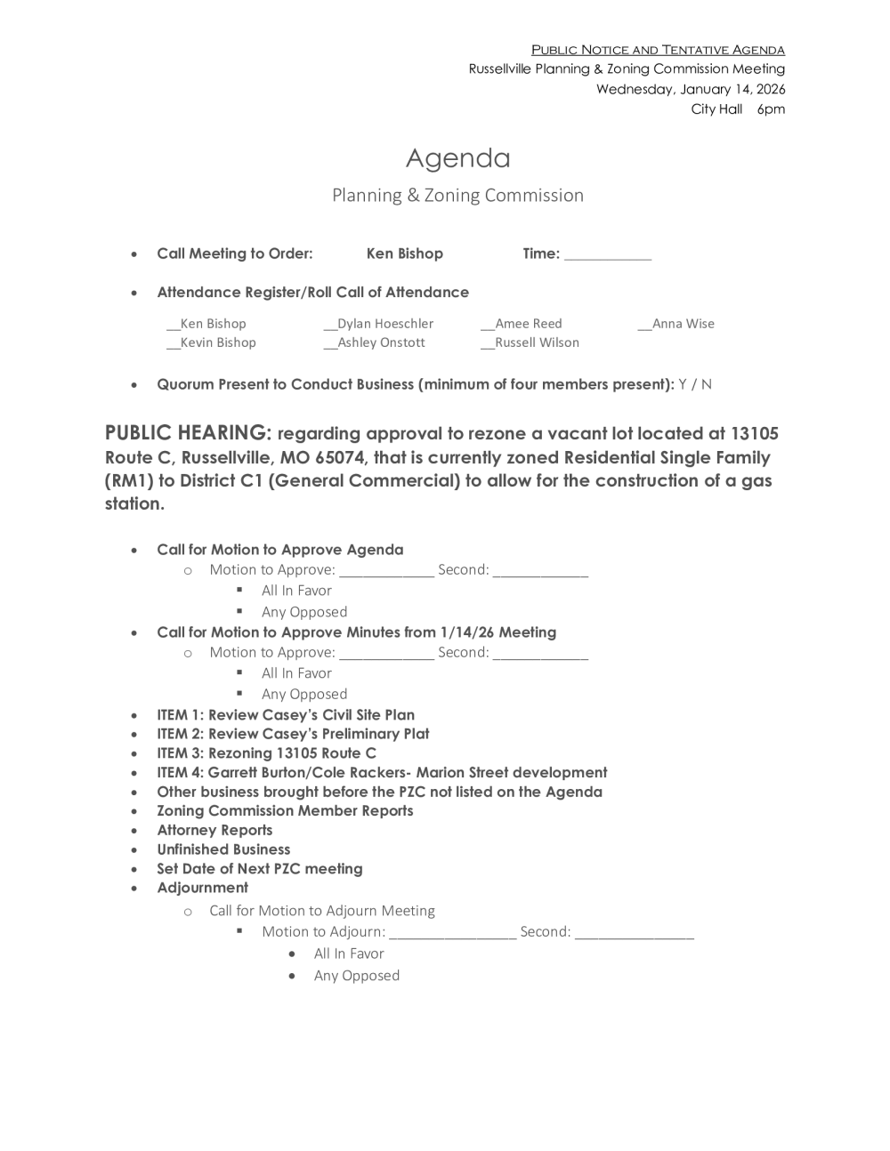 Planning and Zoning Commission