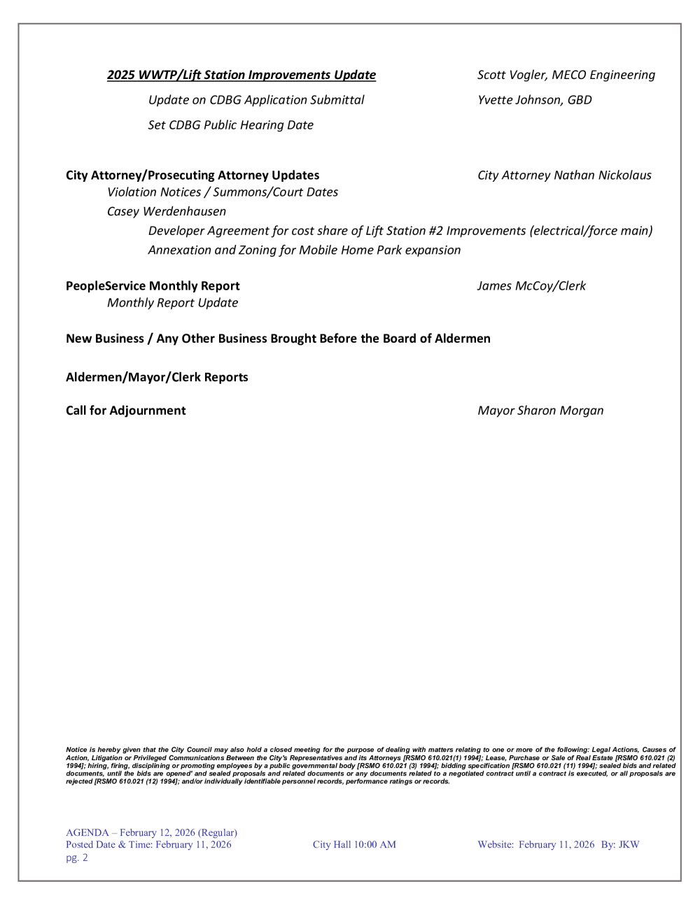 Board of Alderman Meetings